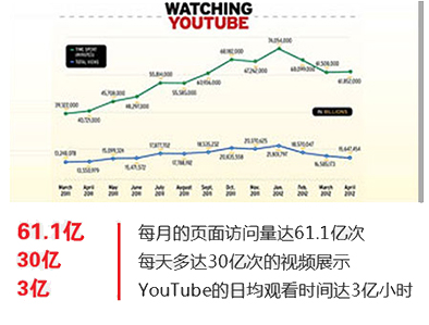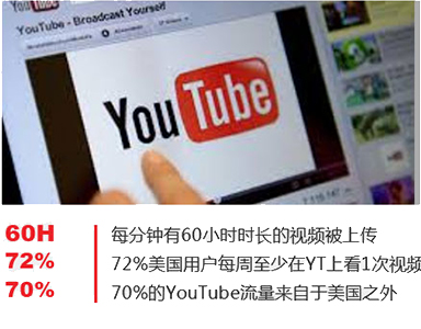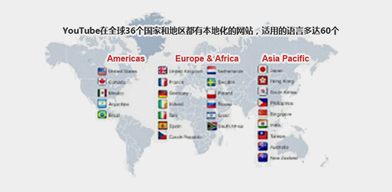 YouTube在全球36個國家和地區都有本地化的網站,適用的語言多達60個,每月有超過10億人訪問YouTube,觀看YouTube視頻的時間超過60億小時。