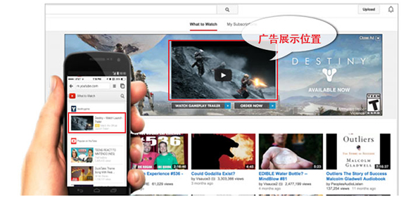 展示在其他YouTube視頻旁邊,或者展示在與目標受眾群體匹配的網站上。