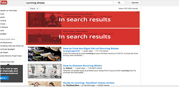 當訪客使用YouTube搜索工具,搜索視頻信息的時候,展示您的廣告內容。